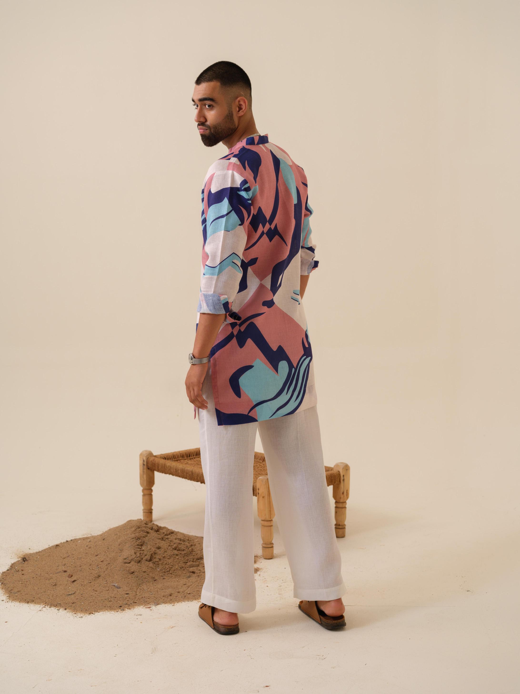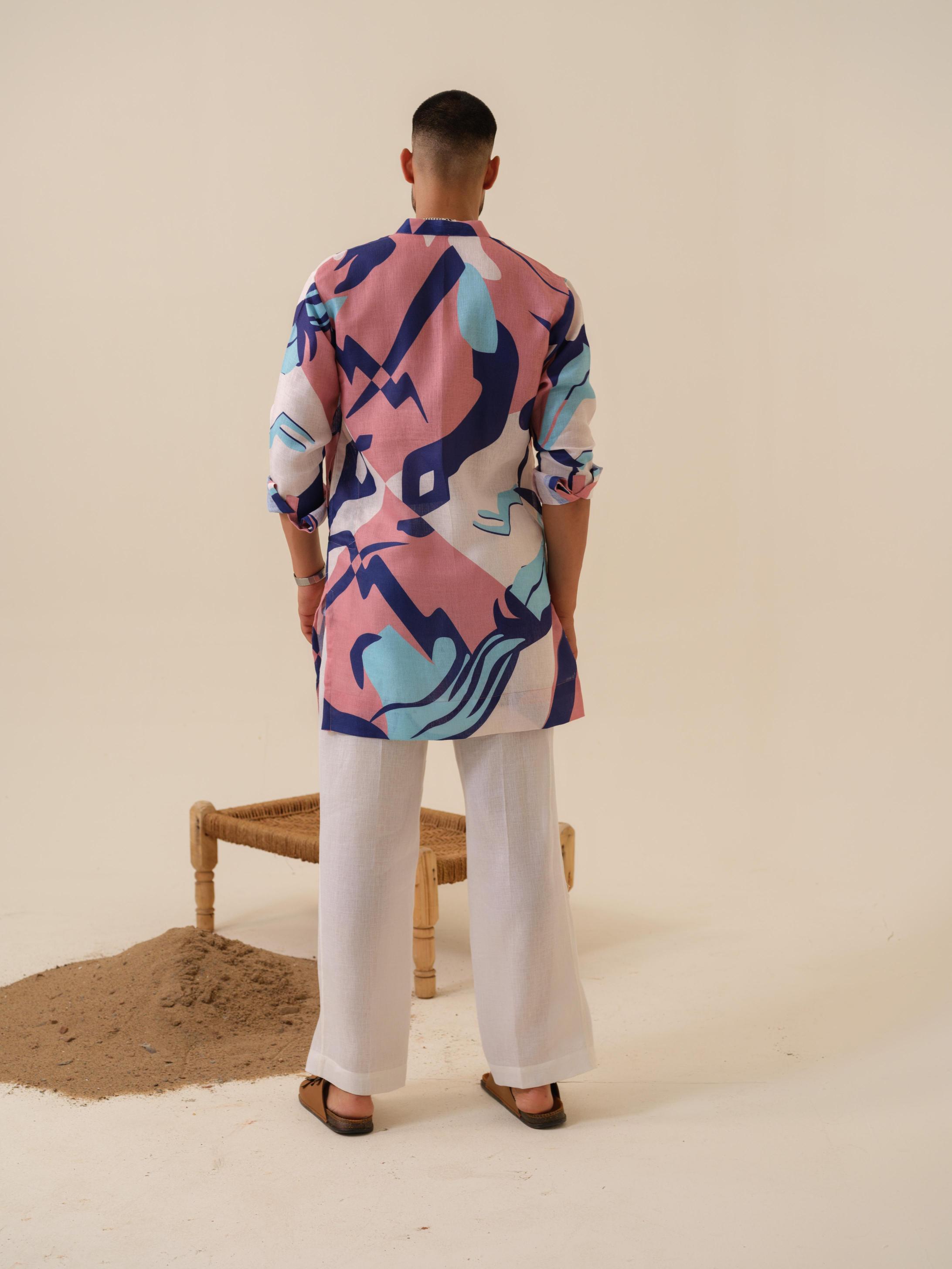 Turn heads this festive season with the Nazar Battu Kurta by Khadidhaga — a unique, abstract-design kurta crafted for men who love to blend tradition with contemporary style.